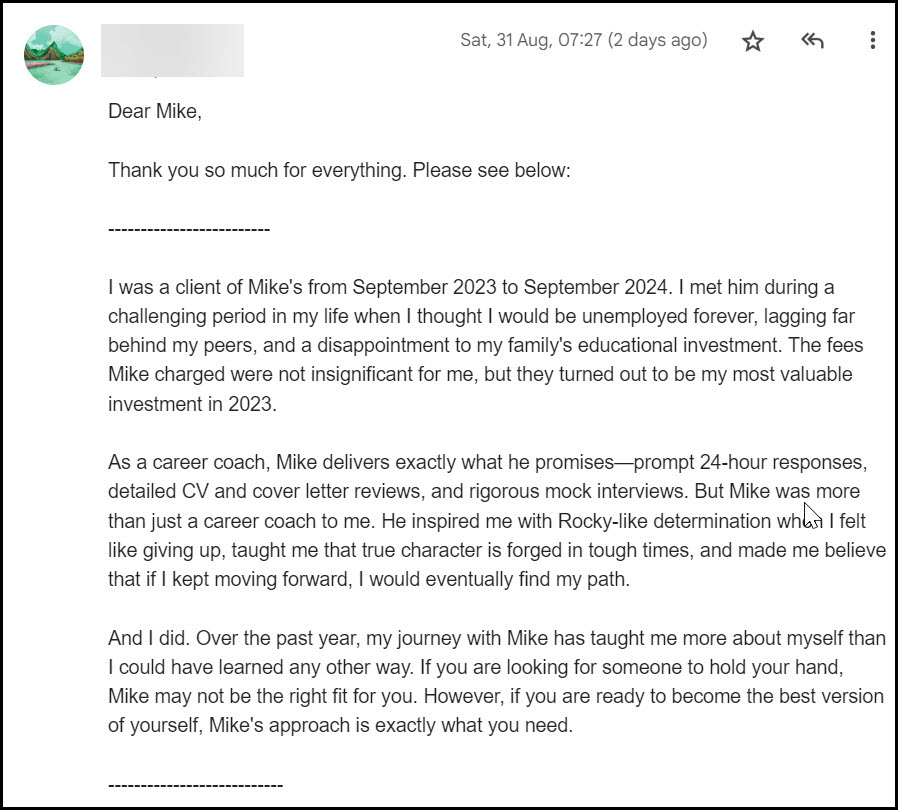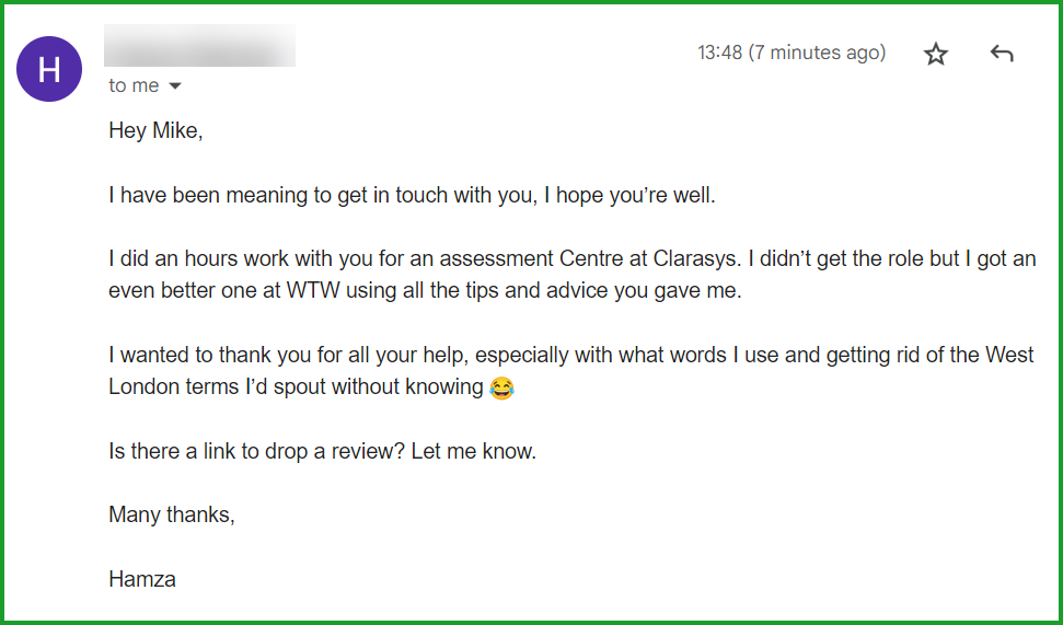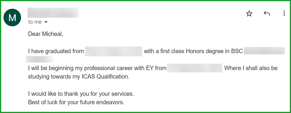Here are emails, text messages, reviews and videos from happy students, professionals, and parents I’ve helped.